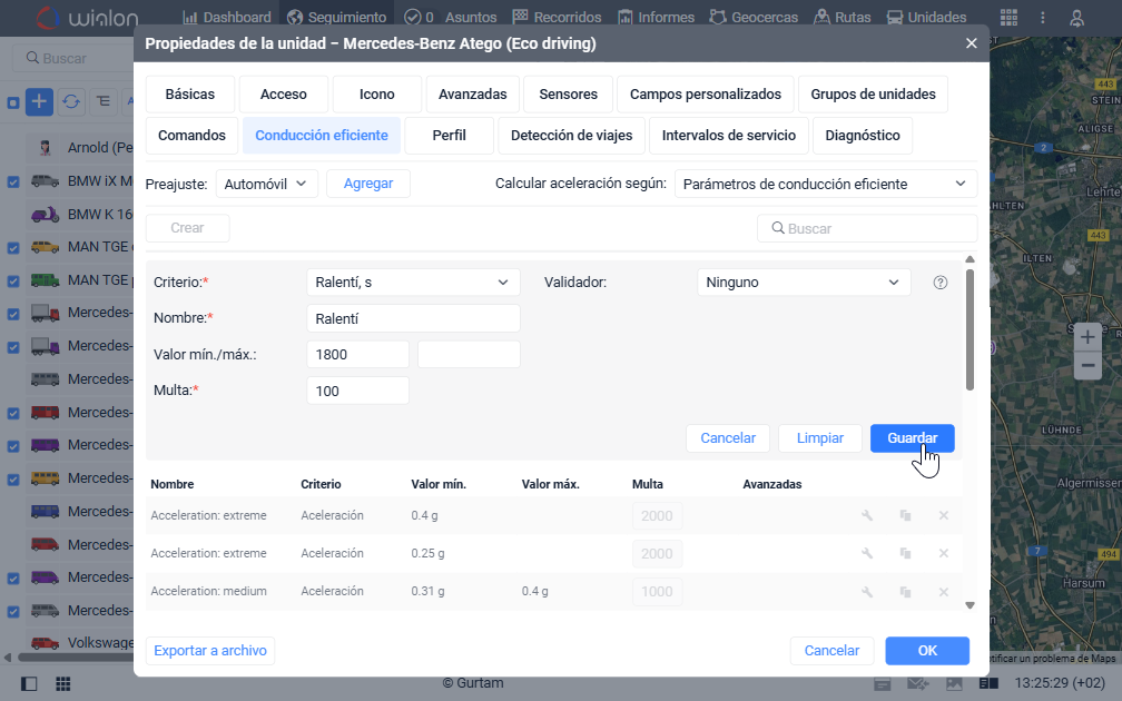 Sí. Dentro de Wialon, contamos con un sistema de evaluación de 10 puntos que le permite establecer los puntos de penalización por cada infracción, permitiéndole ajustar la funcionalidad conforme a las exigencias de su cliente. Esta flexibilidad lo convierte en un software de monitoreo del conductor altamente adaptable.